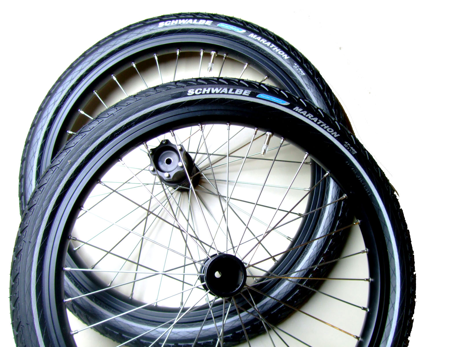 20" Kettwiesel Hinterrad Satz (Hinterräder rechts & links; neu) für Hase-Trike; Scheibenbrems-Nabe, Hohlkammer-Felge, komplett eingespeicht und bereift mit Schwalbe Marathon 47-406