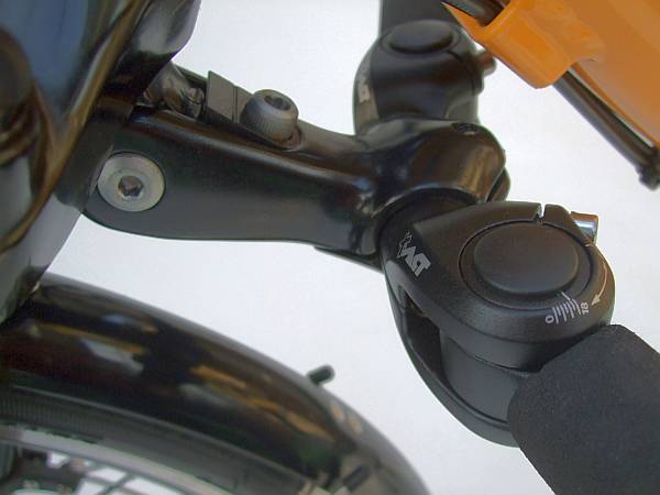 Faltlenker für Unterrohrlenkung, Aluminium: praktische Verringerung der Fahrradbreite von 65cm auf unter 30cm, z.B. für den Transport in der Bahn oder auf dem PKW-Heckträger; Montage nur in Verbindung mit winkelverstellbarem Vorbau Art. 100221101