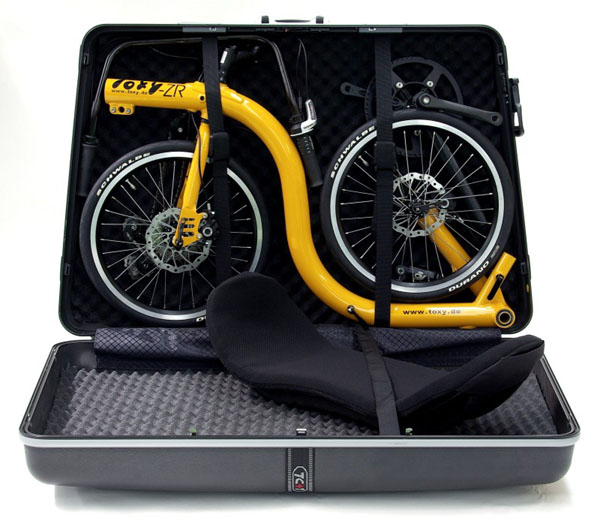 Faltoption Toxy-ZR. Durch die längere, schwenkbare Mono-Schwinge liegt das Hinterrad während des Transportes platzssparend und sicher fixiert im Radius des Hauptrahmens. So passt das nur geringfügig zerlegte Toxy-ZR inclusive Sitzschale in den praktischen, optionalen RaceCase. – Und es bleibt noch genügend Platz für Trikots, Rennschuhe und weitere Utensilien. Wir wünschen Ihnen einen sportlichen Urlaub!