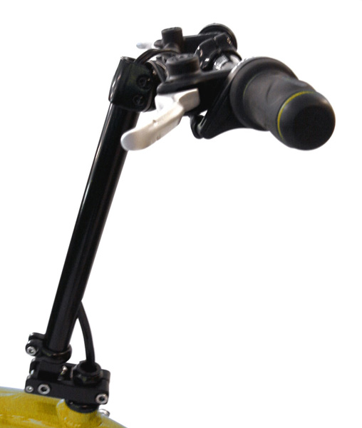 Aluminium-Hochlenker in Klappversion: Einfachstes Aufsteigen und vielfältige, individuelle Anpassungsmöglichkeiten für maximalen Komfort. (Beim Toxy Flite bereits in der Serien-Ausstattung enthalten)