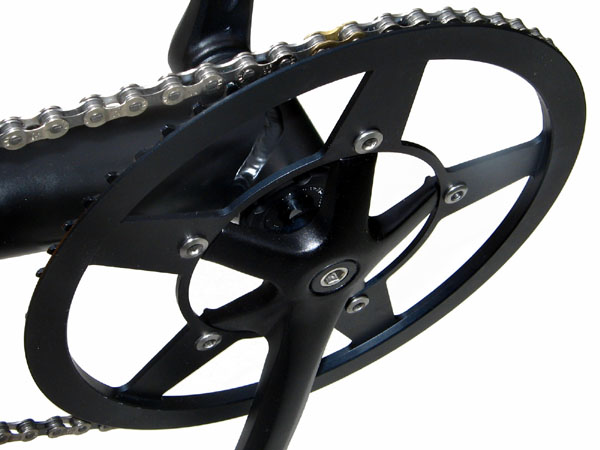 Kettenblatt 70 Zähne (statt 60 Zähne) für 16% höhere Endgeschwindigkeit; CNC-gefräst mit integriertem Kettenschutzring.