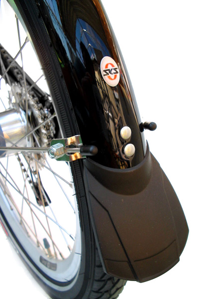 Kunststoffschutzbleche 20", extra lang; mit Spoiler; radfeste Montage mit Niro V-Streben. (Hinweis: Beim Toxy-ZR nur VR-Schutzblech.)