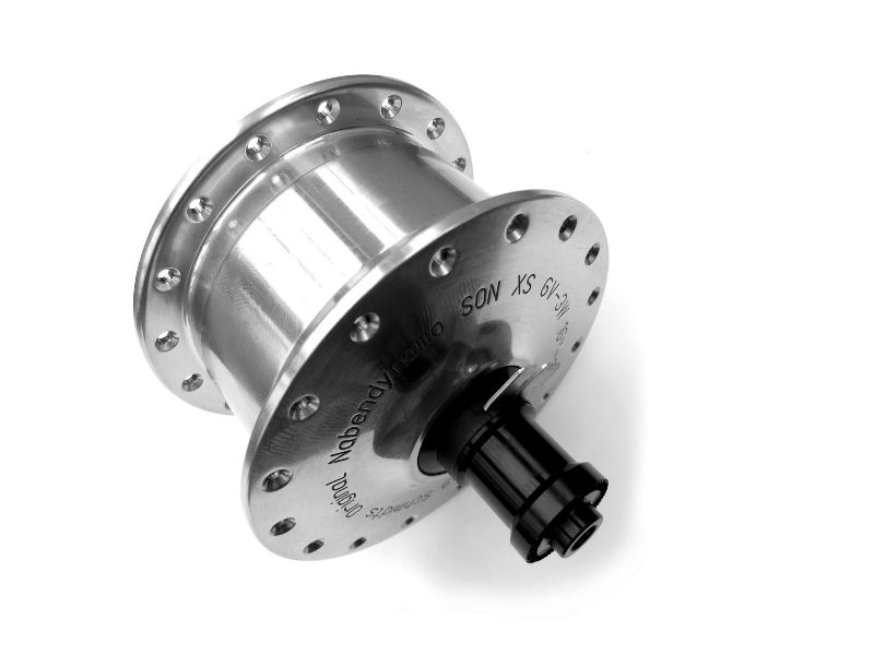 Nabendynamo Schmidt Original SON XS 100, 32L., speziell für Laufräder 16/20" z.B. Falträder; extra leicht & kompakt, ohne Scheibenbrems-Option, silber-pol.