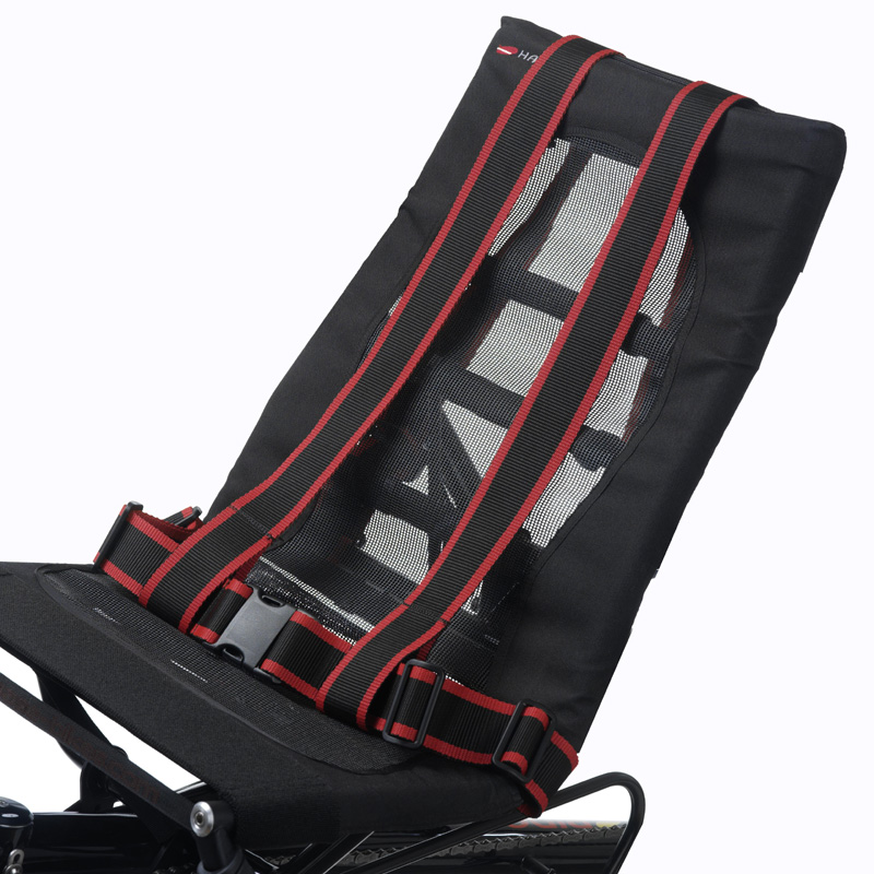 Sicherheitsgurt-System: Hosenträgergurt incl. Beckengurt – sichert Passagiere mit motorischen Störungen komfortabel auf dem Trimobil-Sitz