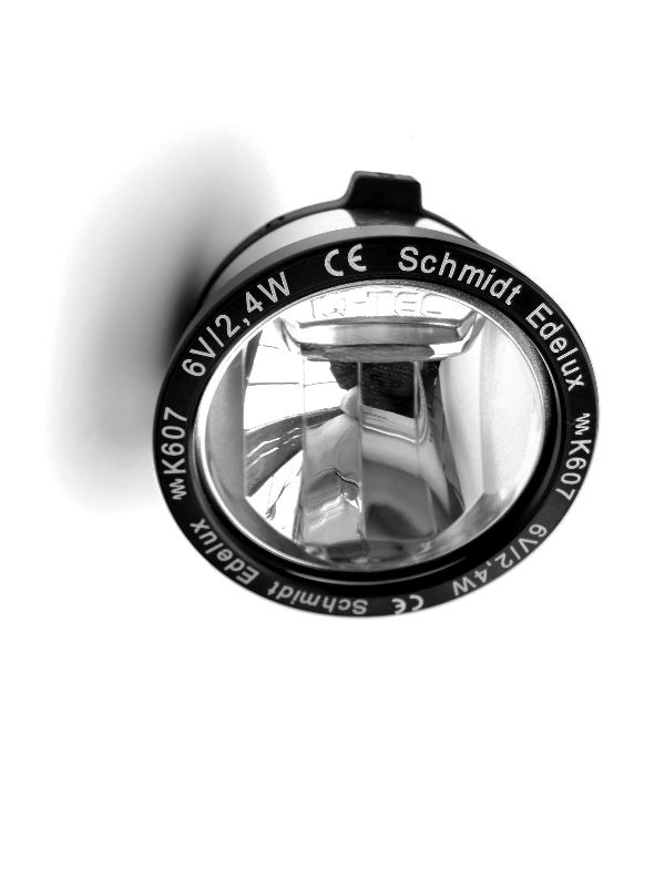 SON Edelux LED Scheinwerfer von Fa. Schmidt aus Tübingen, das Original zum SON Nabendynamo mit bis zu 70 LUX, inclusive Einschalt- und Standlichtautomatik: Mehr Licht, Komfort & Stil geht nicht. Poliert.