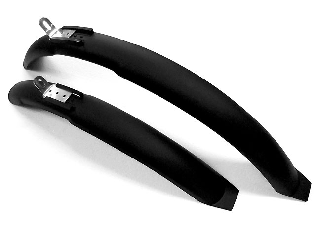 Steck-Schutzblech-Set 20" (VR & HR), 54mm breit, Befestigungs-Lasche in mehreren Positionen rastbar; incl. verzinkte Befestigungswinkel & Verschraubungen